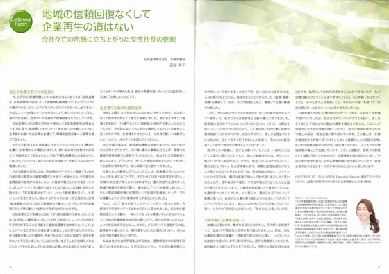 We received a report on Ishizaka’s lecture, titled “There is no path to corporate revival without restoring the trust of the local community.”