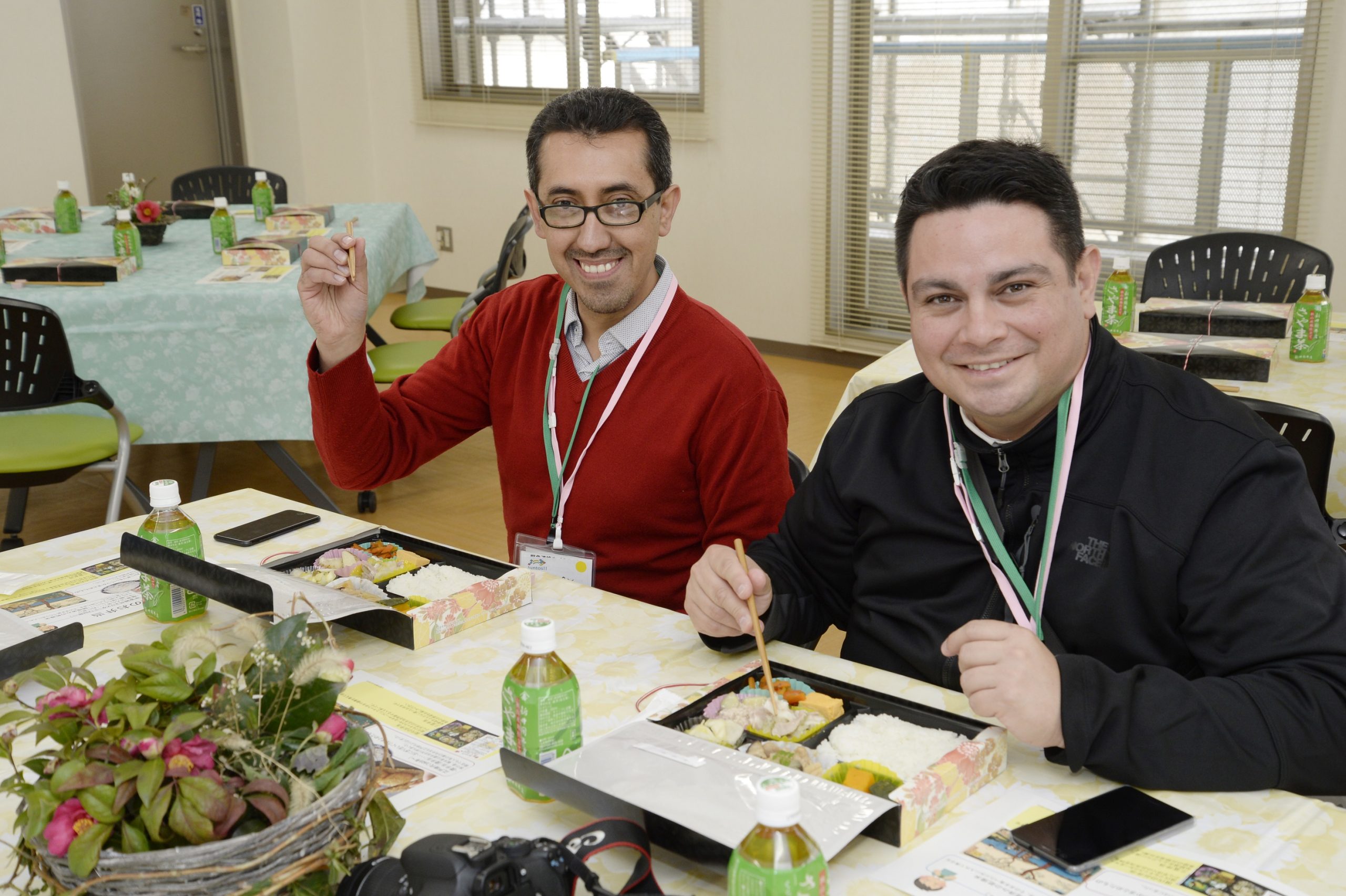 また、昼食には、地元の食材をふんだんに使った日本ならではのお弁当をご用意し、食を通した日本文化の体験もしていただきました。テーブルに飾られた季節の花や、色鮮やかな日本のお弁当を通して、日本の「おもてなし」の心も感じていただけたようです。