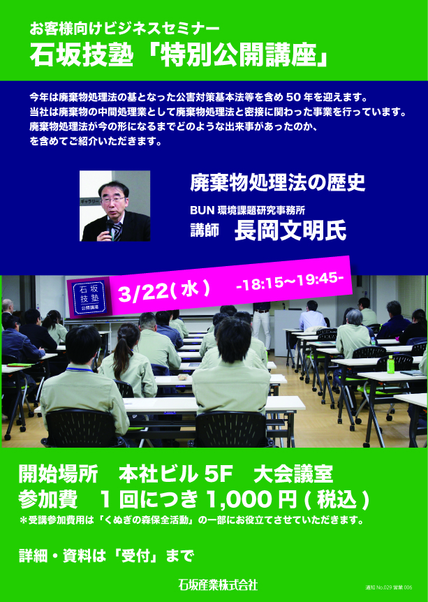 今年は、現在の廃棄物処理法のもととなった「公害対策基本法」の制定から50年を迎えます。その節目にあたって、廃棄物処理法のテキスト編集にも関わってこられた長岡文明氏を講師に迎え、廃棄物処理法が今の形になるまでの歴史をご紹介いただきました。