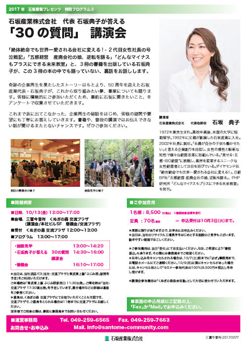 第三弾 代表 石坂典子が答える「30の質問」講演会