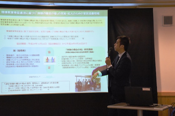 日本の環境教育の実態と、今後官民協働で取り組む「体験の機会の場」の充実・拡大に向けた取り組みを紹介いただきました。