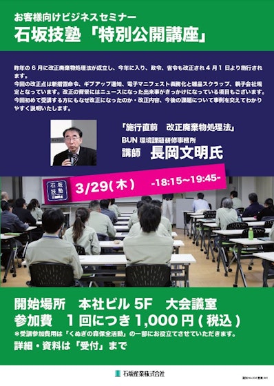 3月29日(木)に、石坂技塾「特別公開講座」を開催しました。