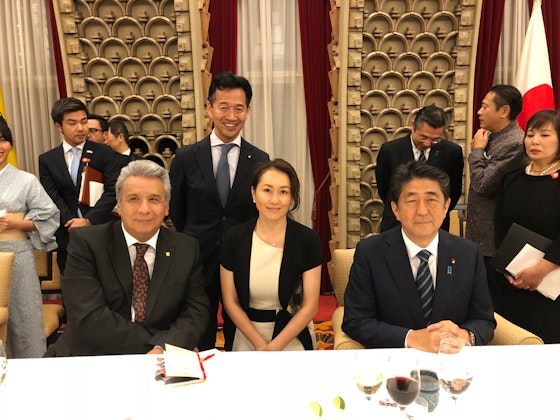 エクアドル共和国大統領レニン・ボルタイレ・モレノ・ガルセス氏、および同夫人の来日を歓迎する晩餐会が総理大臣公邸にて開催され、以前より大統領と親交のある石坂も招待され、出席いたしました。