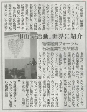 11月1日発行の日刊工業新聞に、世界循環経済フォーラムに当社代表・石坂典子が登壇した様子が掲載されました。