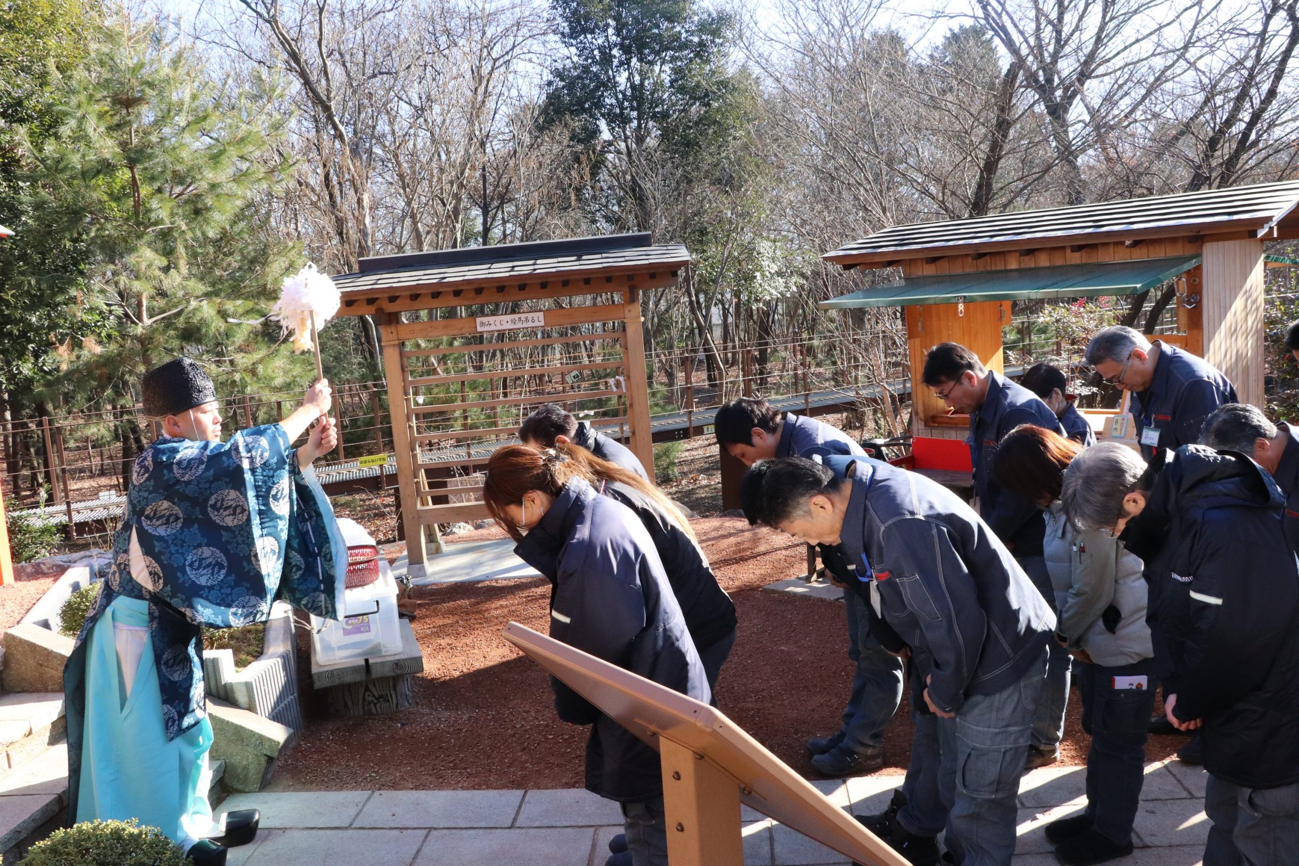 仕事始めとなった1月4日、当社では「しあわせ神社」への新年祈願と、全社員による新年会を行いました。