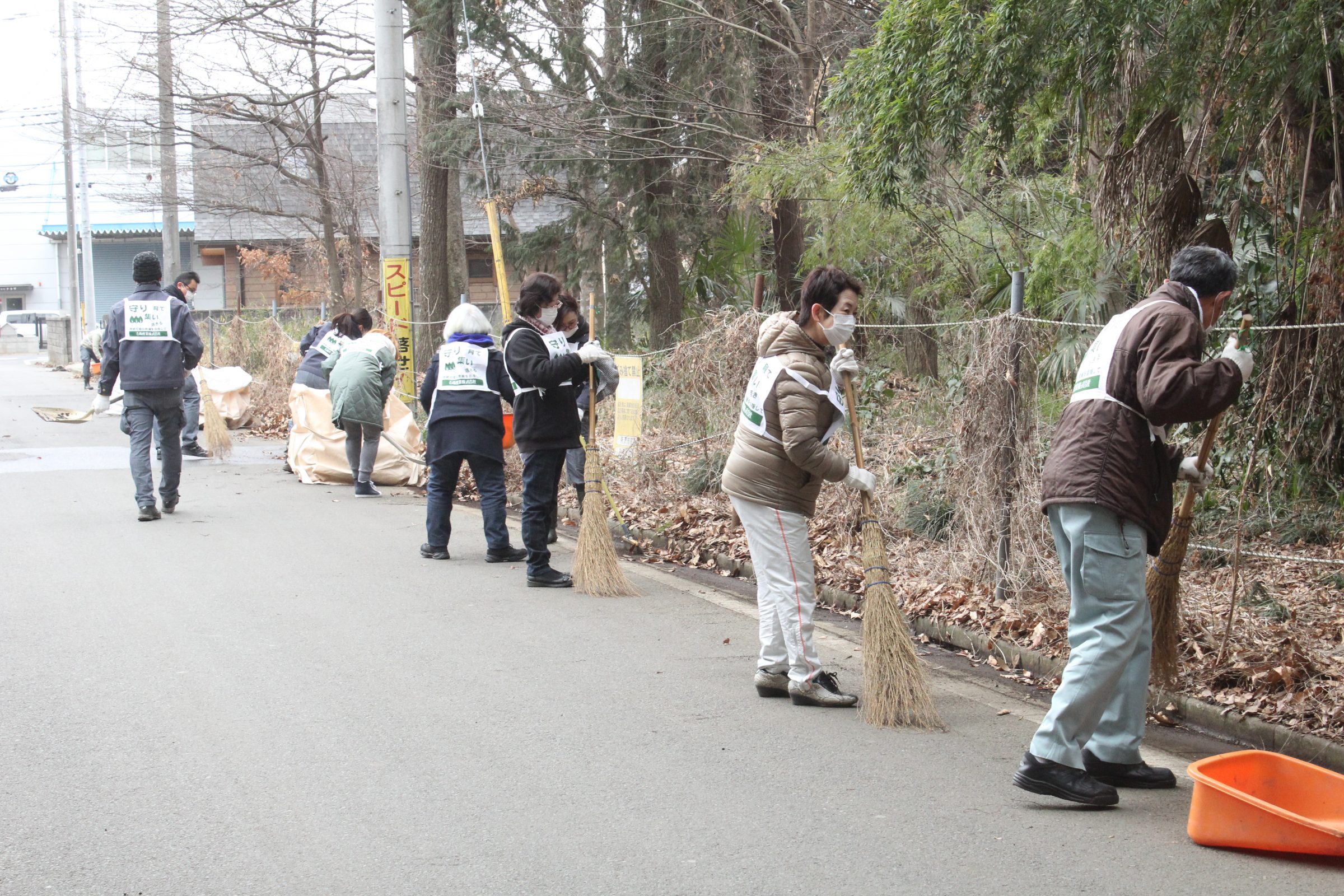 今回は、公道清掃終了後に、三富地域の冬の風物詩「落ち葉かき」体験を実施します。