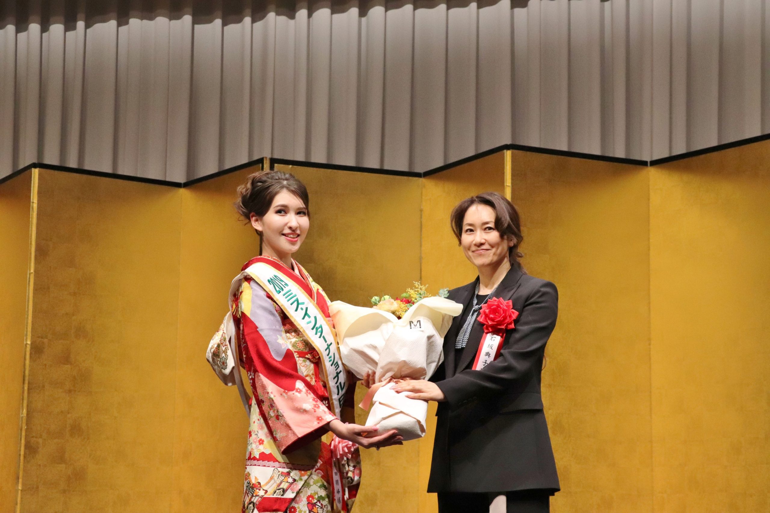 2019年ミスインターナショナル日本代表岡田氏が花束贈呈をされたりと、