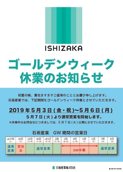 以下の期間をゴールデンウィーク休業とさせていただきます。