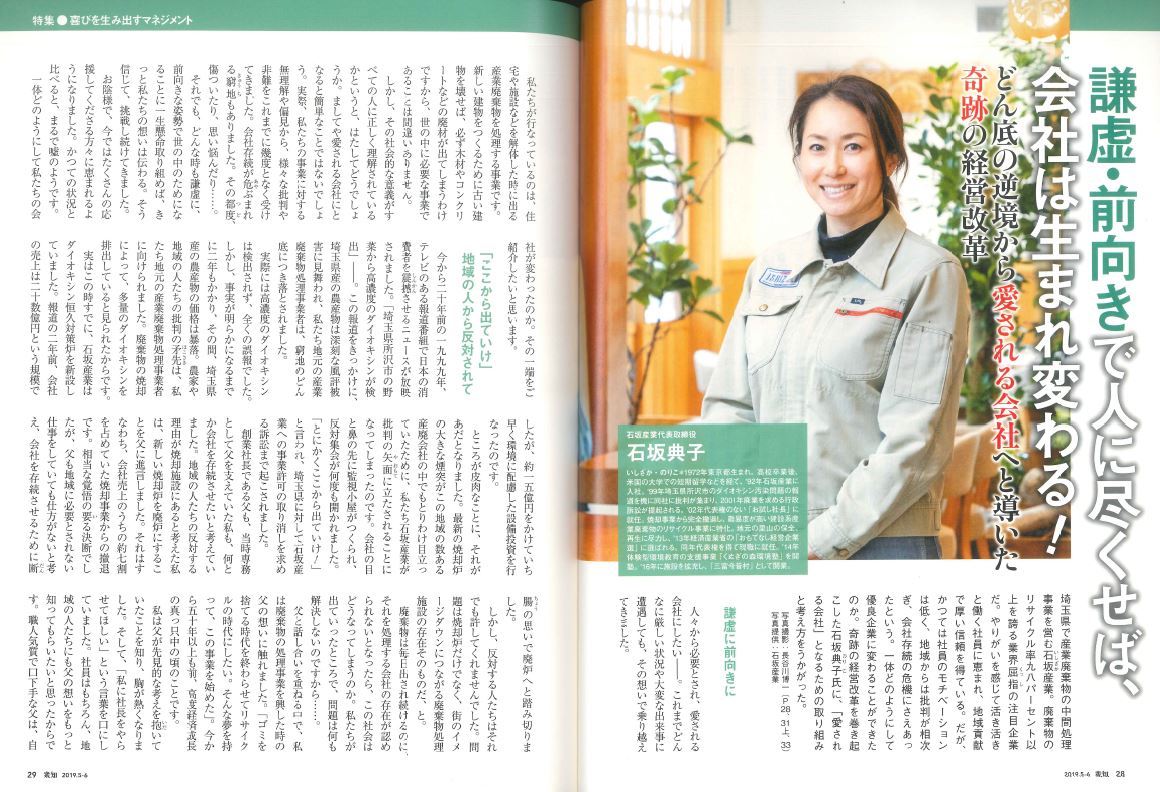 PHP研究所が発行する経営者・リーダーのためのマネジメント誌『衆知』(5-6月号)に、当社代表・石坂典子のインタビューが掲載されました。