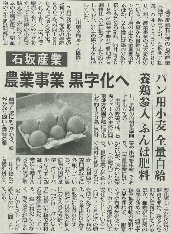 6月17日付の日刊工業新聞で、石坂ファームが取り組む