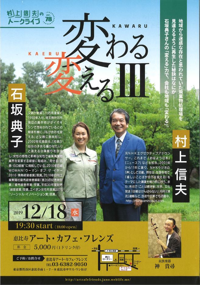 「村上信夫のトークライブ」に、当社代表・石坂典子が登壇させていただきます。