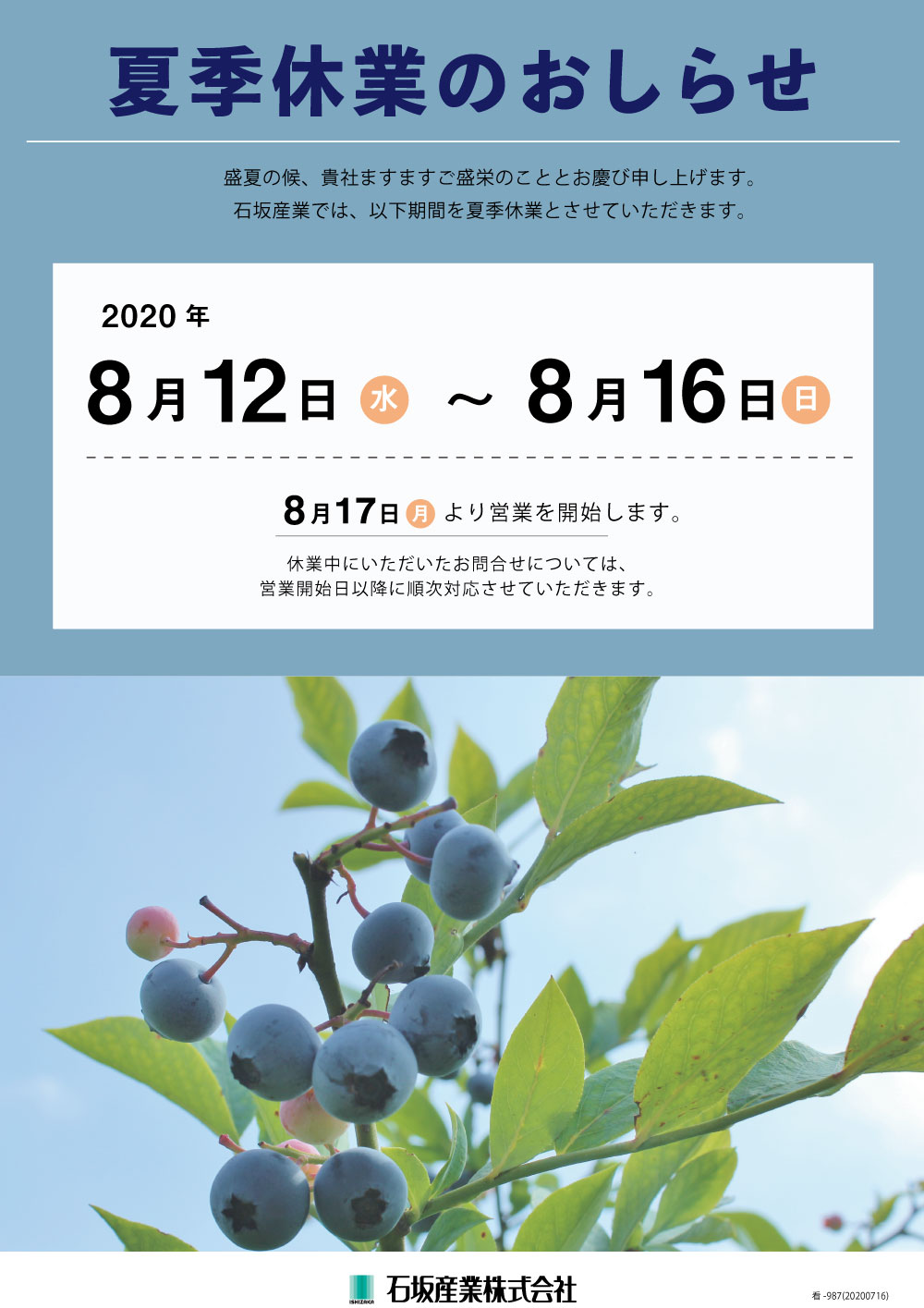 石坂産業株式会社グループ、および三富今昔村各施設は、 以下の期間夏季休業とさせていただきます。