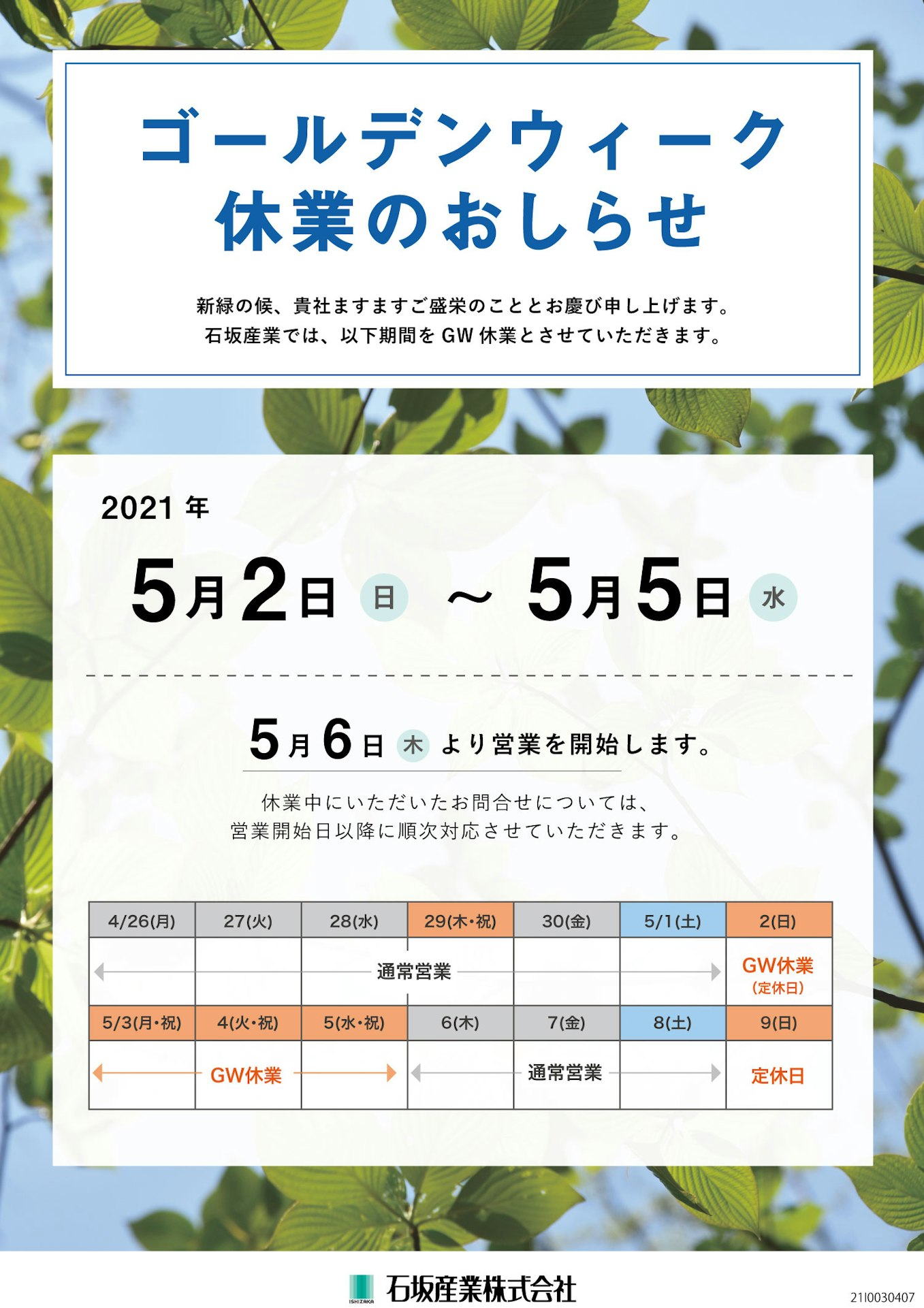 以下の期間をゴールデンウィーク休業とさせていただきます。