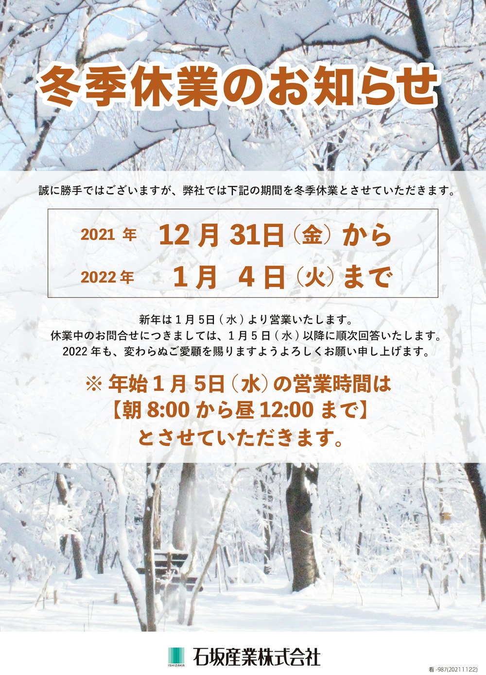 石坂産業では、下記日程を冬季休業とさせていただきます。