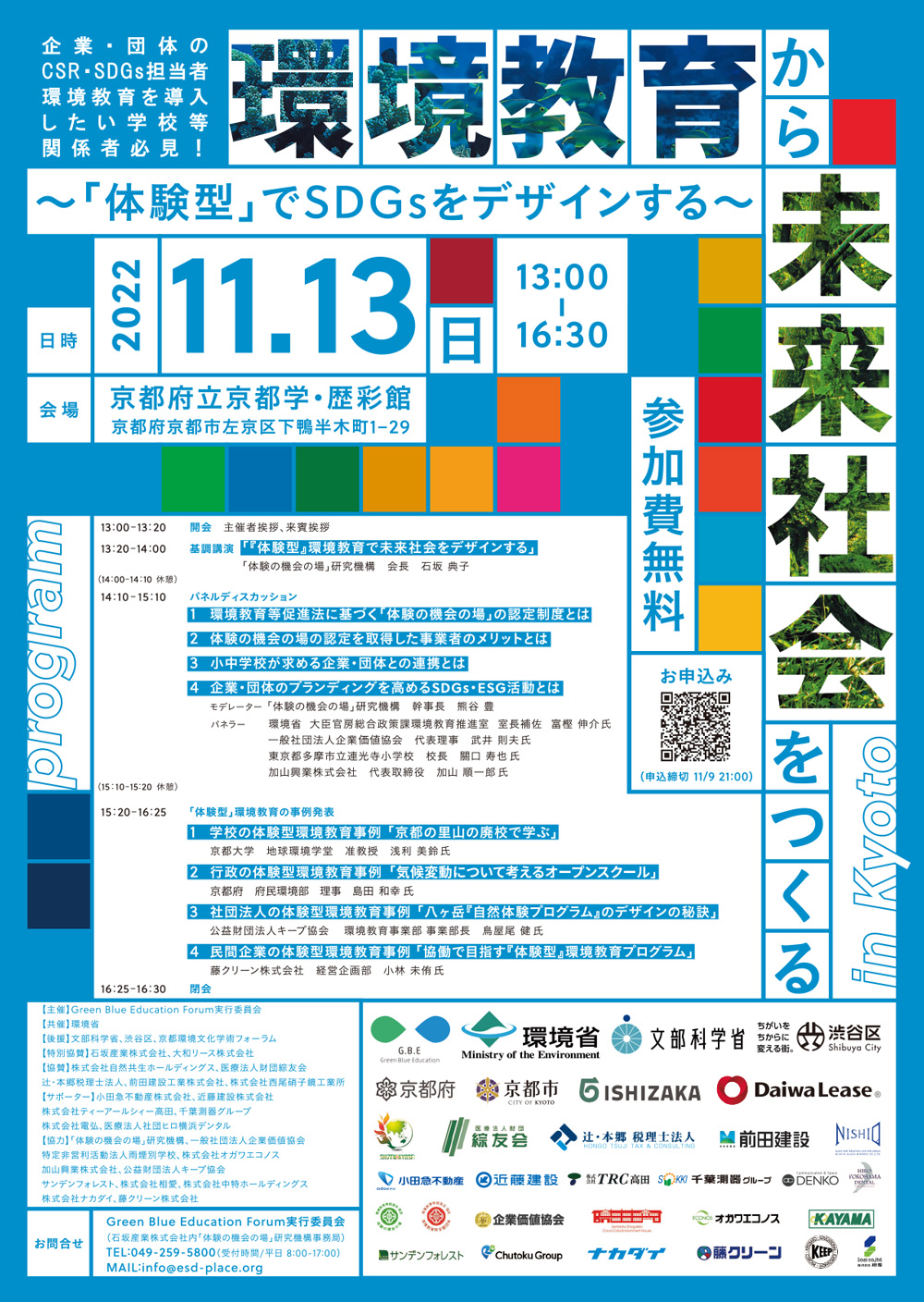 11月13日(日)に京都府立京都学・歴彩館 大ホールで環境教育のシンポジウムが開催されます。