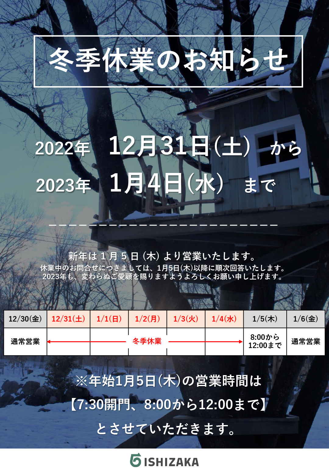 石坂産業では、下記日程を冬季休業とさせていただきます。