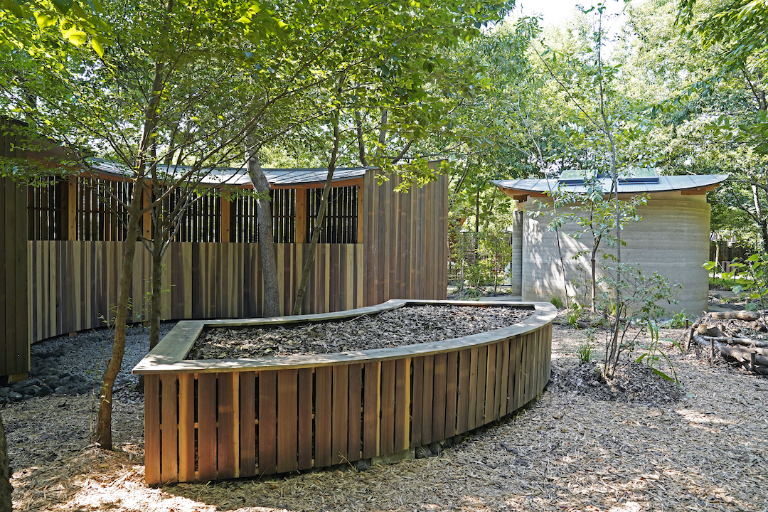 また、トイレ周辺は世界農業遺産(注9)に認定された武蔵野の落ち葉堆肥と既にこの土地にある資源を活用した大地の再生技術が施され、土中の空気や水の流れを改善し里山を再生させるランドスケープデザイン(技術指導 WAKUWORKS株式会社(注10))となっています。